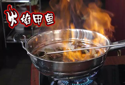 2、奇:不放油、不放水、放60°以上高度白酒,火焰高達(dá)1.5米;翻炒十幾分鐘,祛除腥味。酒精燃燒干凈,蒸出水分。