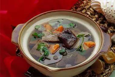 這可是煲湯的關(guān)鍵。研究發(fā)現(xiàn),原料與水分別按1∶1、1∶1.5、1∶2等不同的比例煲湯,湯的色澤、香氣、味道大有不同,結(jié)果以1∶1.5時最佳。對湯的營養(yǎng)成分進(jìn)行測定,此時湯中氨態(tài)氮(該成分可代表氨基酸)的含量也最高,甚至高于用水較少時。這是因為水的加入量過少,原料不能被完全浸沒,影響了湯中營養(yǎng)成分的濃度。隨著加水量的增加,湯中氨態(tài)氮被稀釋后濃度會有所下降。但是,湯中鈣、鐵的含量以原料與水1:1的比例時為最高。
