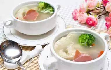 注意調(diào)味用料投放順序,特別注意熬湯時不宜先放鹽。因鹽會使原料中水分排出,蛋白質(zhì)凝固,鮮味不足。通常60℃~80℃溫度易引起部分維生素破壞,而煲湯使食物溫度長時間維持在85℃~100℃。故在湯中加蔬菜應(yīng)隨放隨吃,以減少維生素C破壞。湯中適量放入味精、香油、胡椒、姜、蔥、蒜等調(diào)味品,使其別具特色,但注意用量不宜太多,以免影響湯的原味。