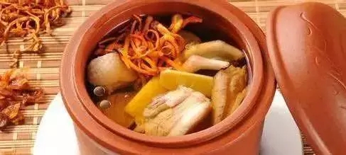 3、煮沸瓦煲里的清水,放入所有材料,武火煮沸,轉(zhuǎn)文火煲一個小時,下鹽調(diào)味即可食用。