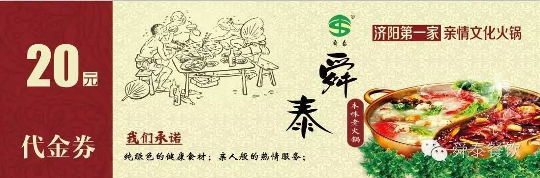 "舜泰火鍋"就餐滿一百元菜金送20元代金券