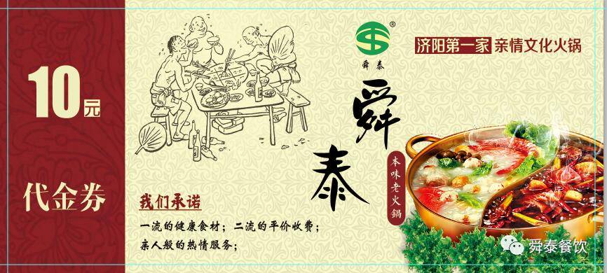 "舜泰廚房"就餐滿一百元菜金送10元代金券