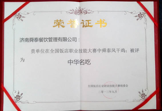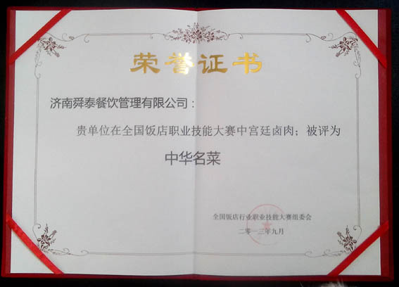 參加全國(guó)飯店行業(yè)職業(yè)技能大賽獲得榮譽(yù)證書(shū)
