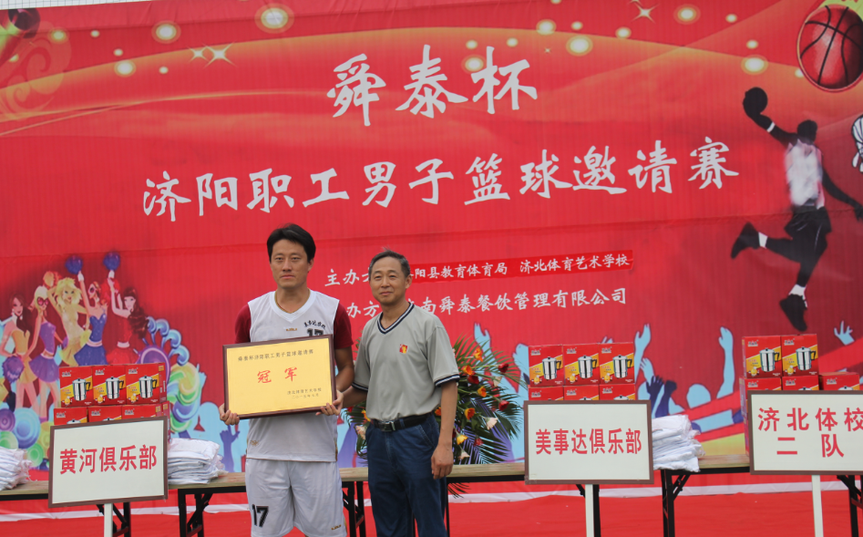 2015年7月29日下午6時,由濟北體育藝術(shù)學校主辦、濟南舜泰餐飲管理有限公司協(xié)辦的“舜泰杯—2015濟陽職工男子籃球邀請賽”經(jīng)過15場次的激烈角逐,順利結(jié)束。濟南正遠廣告?zhèn)髅接邢薰镜凝R東先生主持本次閉幕儀式。