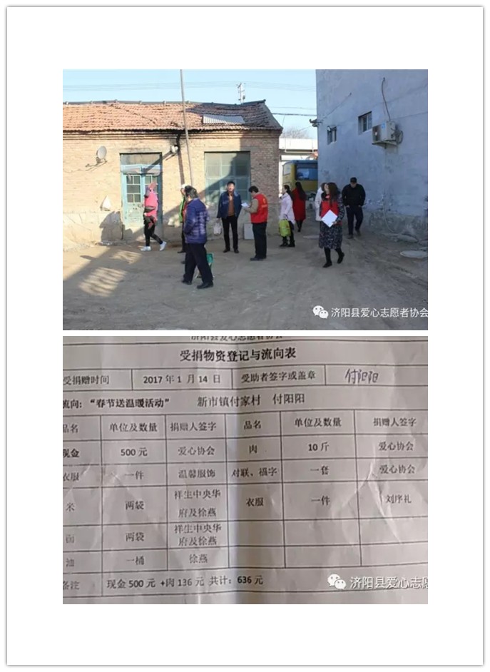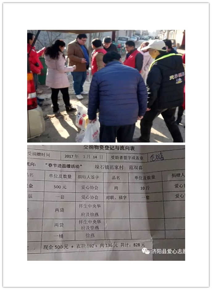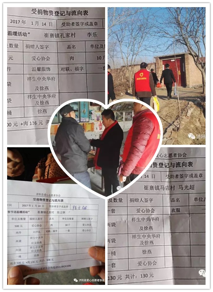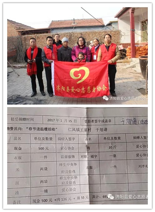 2017年1月14號(hào)早上八點(diǎn)濟(jì)陽(yáng)縣愛心志愿者協(xié)會(huì)會(huì)員們一大早就來到協(xié)會(huì)為今天的活動(dòng)做準(zhǔn)備。因需要捐助的人員多、每家距離遠(yuǎn)等原因最終決定分南、北兩組進(jìn)行愛心捐助。